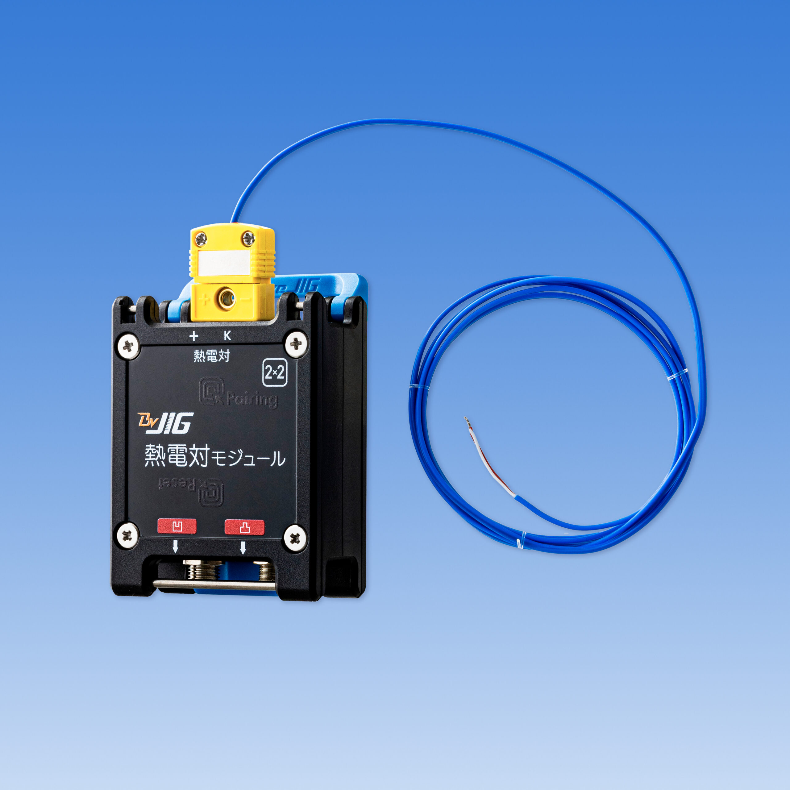 JIS規格準拠のK型熱電対に対応した熱電対センサーモジュール。付属品のオメガコネクタ付K熱電対(またはK型熱電対で同等の市販製品の利用可能)を接続し温度測定が可能です。測定された温度情報は、BraveJIGルーターへの接続を介して取得できます。